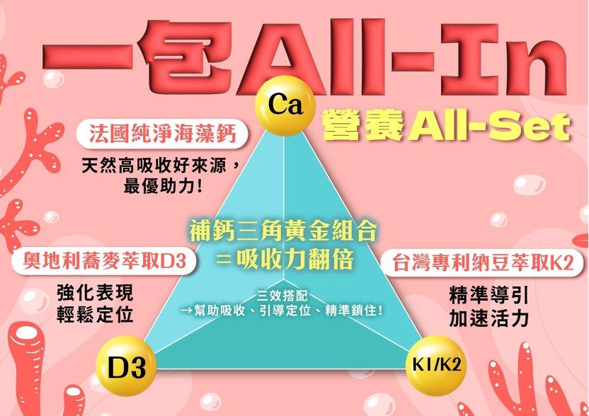 這樣的組合能同時做到:補得進(天然鈣)、吸收好(天然 D3)、導得準(天然 K2)、留得住(CPP+硼),真正符合人體利用機制。對希望從根本提升骨密度、減少骨質流失風險,又想兼顧免疫與全身機能的人來說,會比單一維生素或單一鈣來源,更符合現代人長期、穩定的專業補充需求。